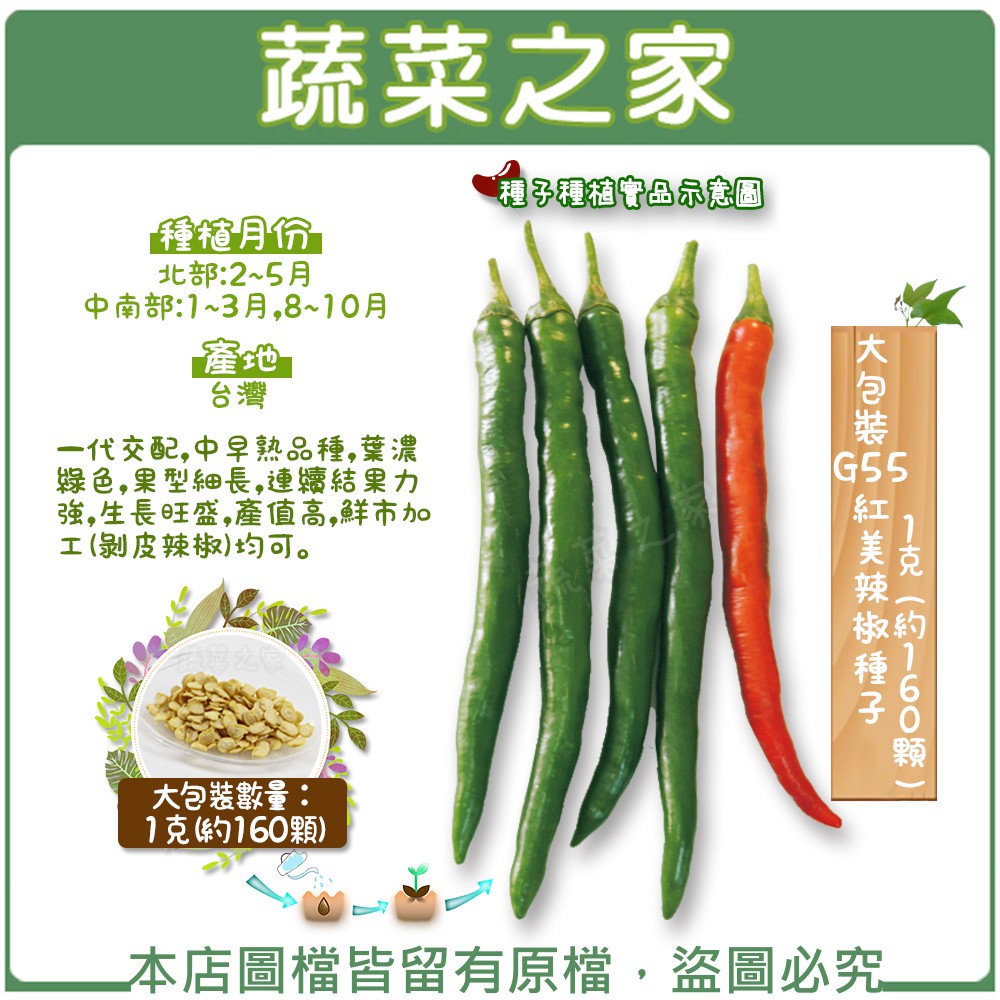 00g55 大包裝 紅美辣椒種子1克 約160顆 一代交配 中早熟品種 葉濃綠色 果型細長 連續結果力強 生長旺盛 蝦皮購物